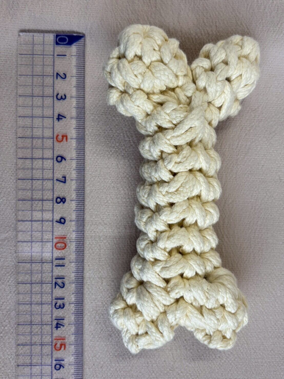この骨型おもちゃは、ハンドメイドで作られたアイテムです。ハンドメイド作成のためサイズに前後がありますので、ご了承ください。愛犬に合ったサイズをお選びください。